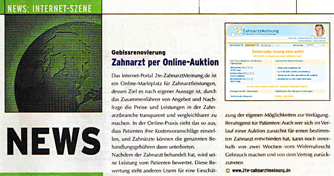 Mehr Wettbewerb zwischen Zahnärzten durch Internetauktionen und Preisvergleiche im Netz